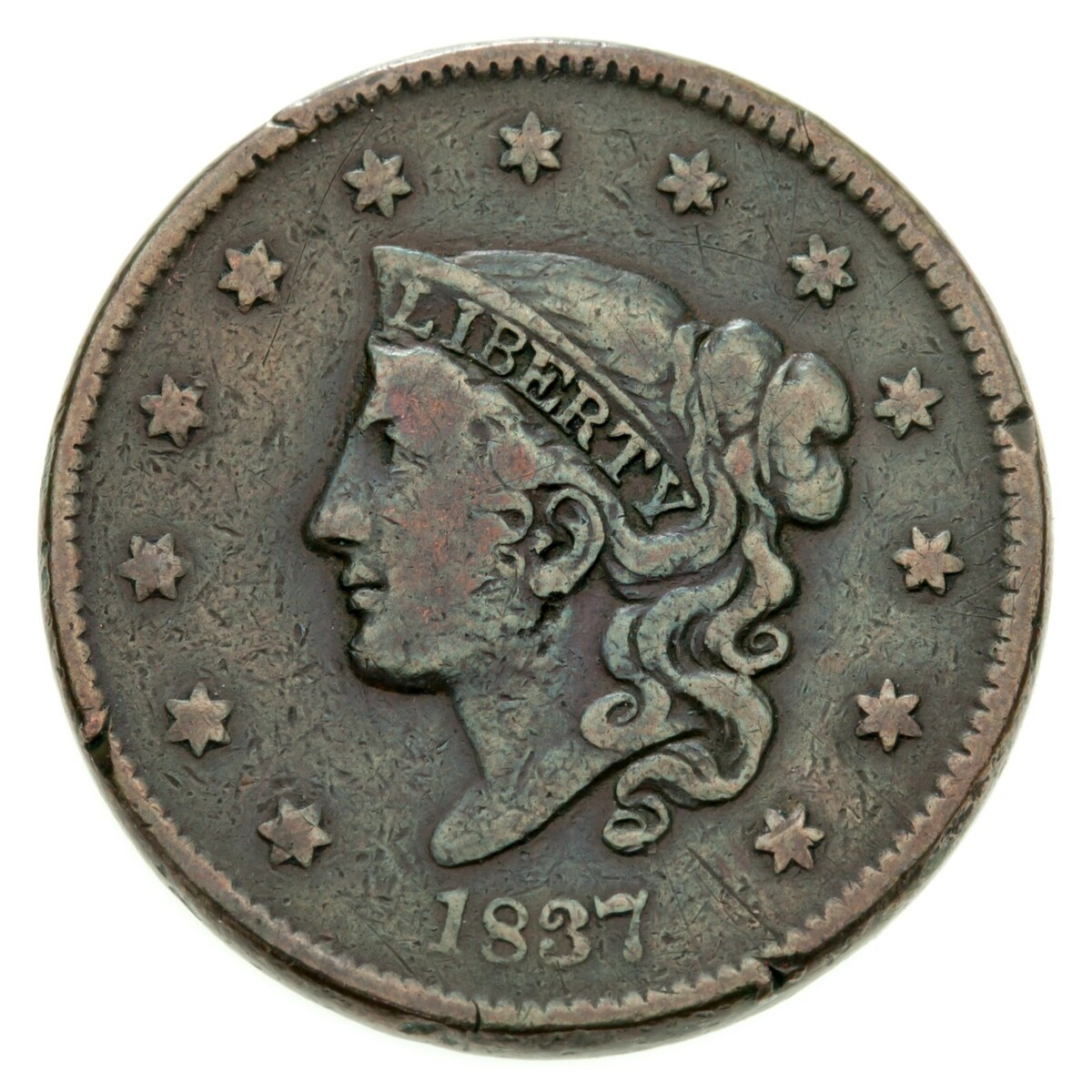 - 1837 Medium Letters Large Cent in Fine Condition, Brown Color, Nice Detail