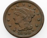 - 1848 Large Cent in Extra Fine XF Condition, Brown Color, Great Detail