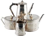 Gorgeously crafted coffee pot, tea pot, sugar bowl (with lid), and creamer
