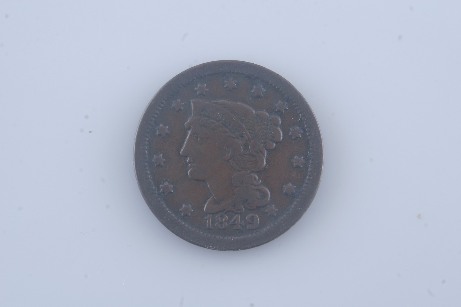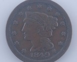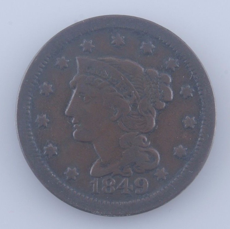 - 1849 Large Cent 1C, Fine Condition, Brown Color, Strong Detail for Grade