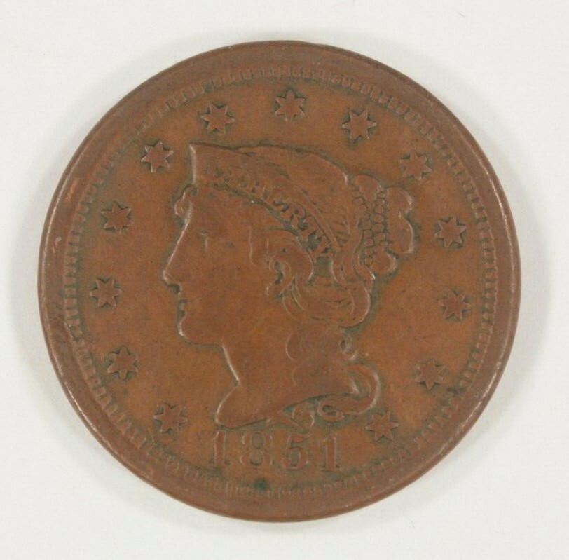1851 large cents in VF condition, all brown color, beautiful detail for grade...
