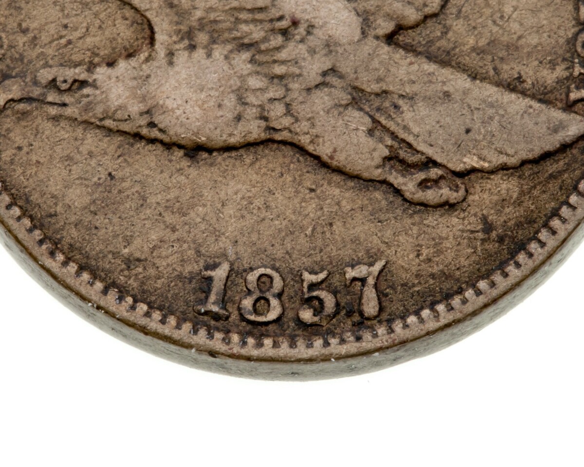 - 1857 1C Flying Eagle Cent in Fine Condition, Brown Color, Nice Detail for Grade