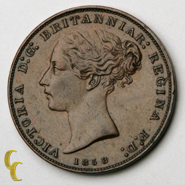 - 1858 Jersey 1/26 Shilling Copper Coin En Au, Km #2- show original title Orig...
