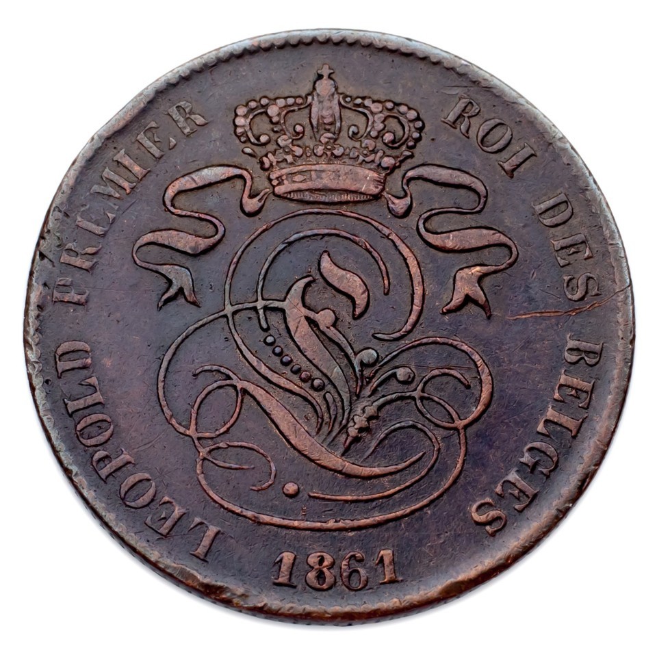 - 1861 Belgium 2 Centimes Coin (Extra Fine, XF Condition) KM# 4.2