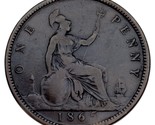 - 1865 Great Britain Penny VF Condition KM #794.2 Rim Bump on Rx