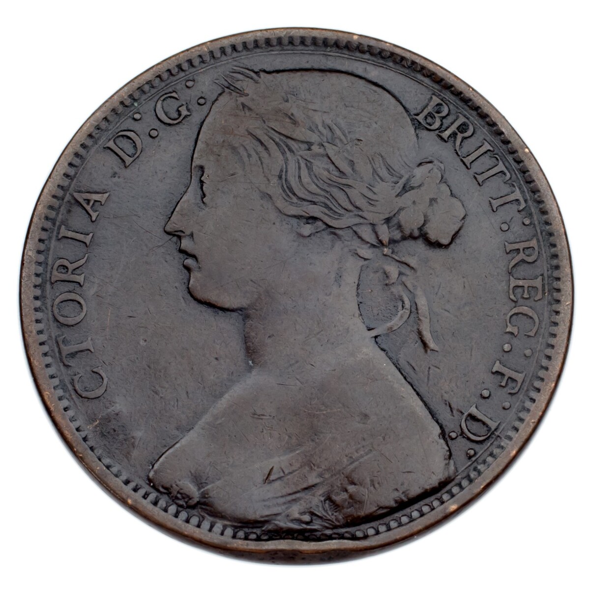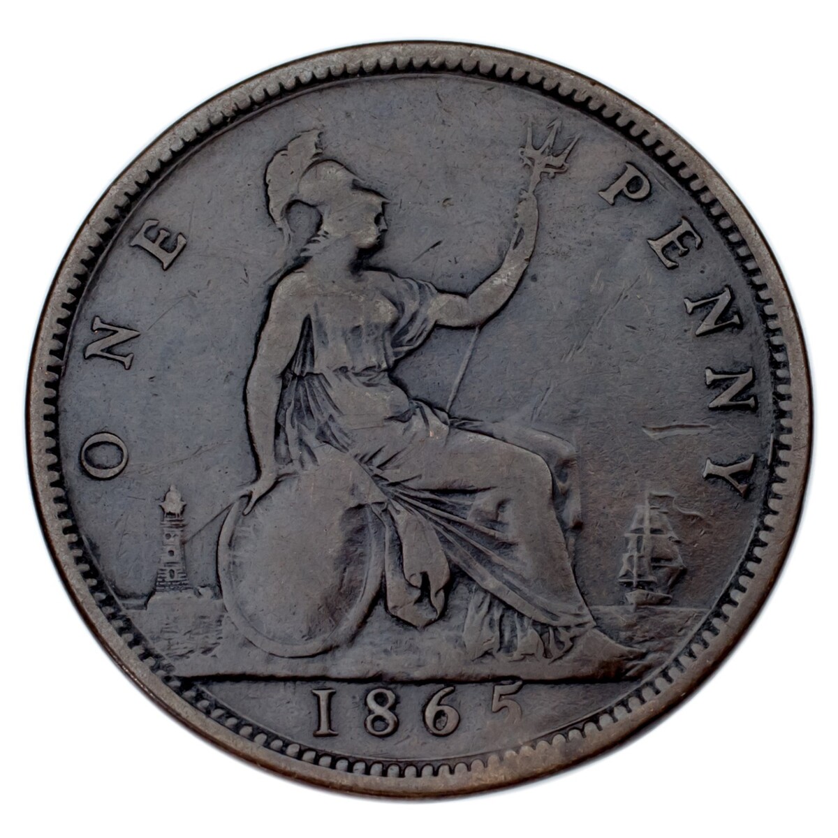 - 1865 Great Britain Penny VF Condition KM #794.2 Rim Bump on Rx