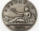 1870 Spain 5 Pesetas Silver Coin In Very Fine, KM 655
