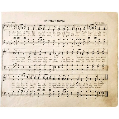 From the 1881 first edition Glad Echoes from the Grange song book published by the Ohio State Grange Fraternal Organization
