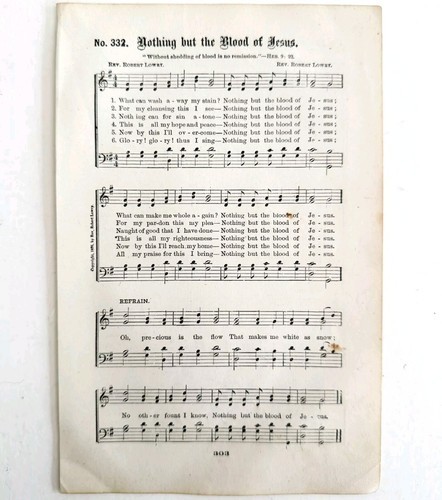 - 1883 Gospel Hymn Blood Of Jesus Sheet Music Victorian Church Religious ADBN1ggg