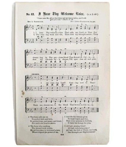 - 1883 Gospel Hymn I Hear Thy Welcome Voice Sheet Music Victorian Church ADBN1fff