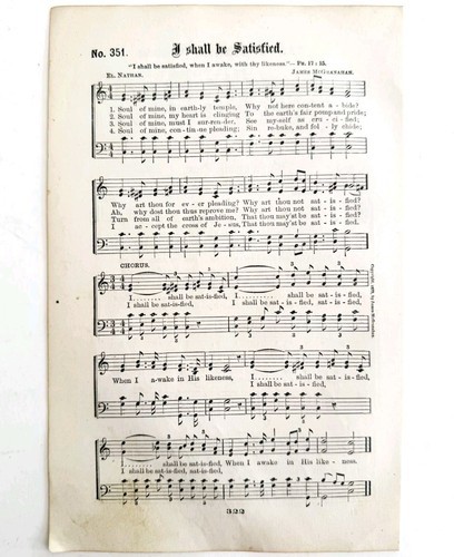 - 1883 Gospel Hymn I Shall Be Satisfied Sheet Music Victorian Religious ADBN1hhh