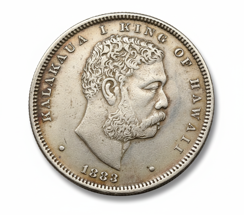 Scopri questa squisita medaglia restrittiva fantasy del 1883 King Kalakaua I Hapalua, un pezzo avvincente della storia hawaiana. Questo oggetto da collezione simile a una prova presenta un busto dettagliato del re Kalakaua I, spesso noto come "The Merrie Monarch", sul dritto, circondato dal suo titolo. L'anno 1883 segna un periodo significativo nel Regno delle Hawaii, rendendolo un oggetto commemorativo veramente storico. Il rovescio mostra con orgoglio lo stemma hawaiano, che simboleggia l'eredita della nazione, insieme alla denominazione 'Hapalua' e al motto 'Ua Mau ke Ea o ka '?ina i ka Pono' (La vita della terra e perpetuata nella giustizia). Questa bellissima restrizione funge da opera d'arte numismatica unica e da oggetto da collezione molto ricercato. E un gettone eccezionale per gli appassionati della cultura hawaiana e della storia del mondo, aggiungendo un fascino distintivo a qualsiasi collezione. Una superba acquisizione per coloro che apprezzano manufatti storici unici.