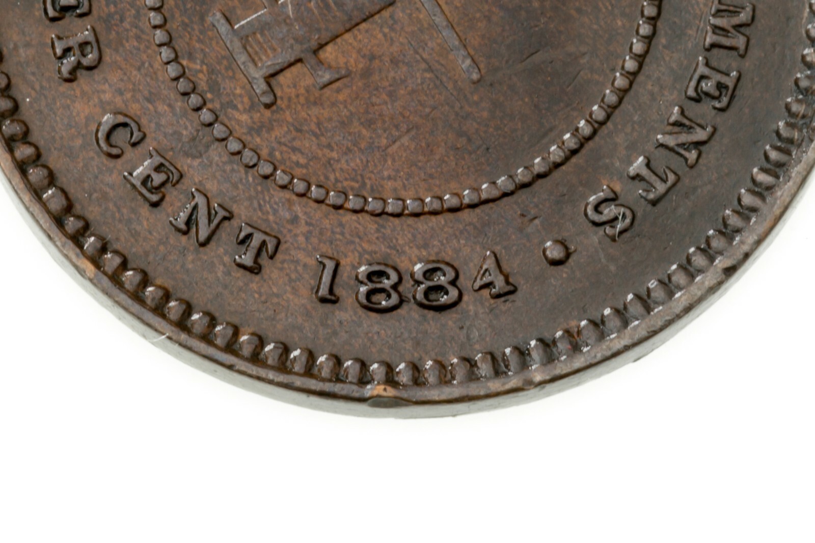 1884 Straits Settlements 1/4 Cent Coin (Condition XF) KM 7A