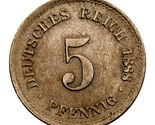- 1888-D Germany 5 Pfenning Munich Mint About Uncirculated Condition
