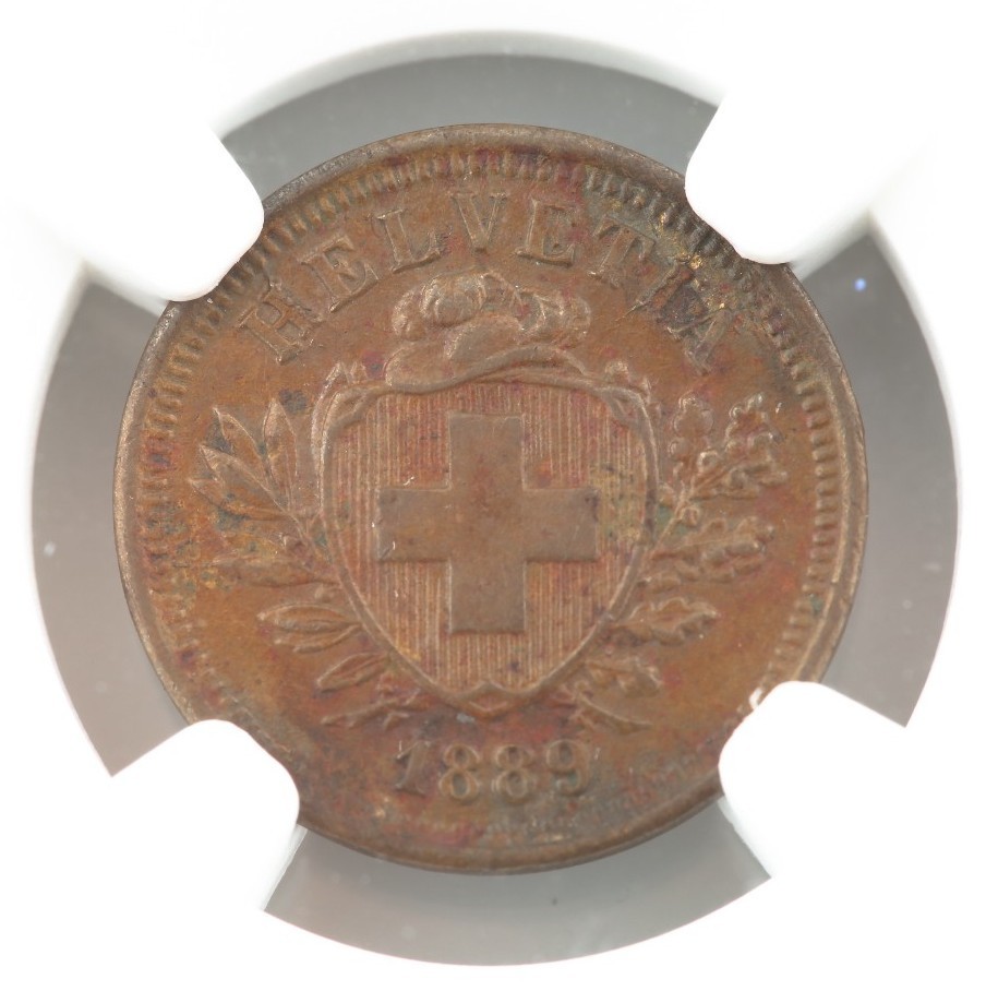1889-B Suisse 1 Rappen Coin Slababed Au 58 BN NGC Graded Swiss KM 3,1