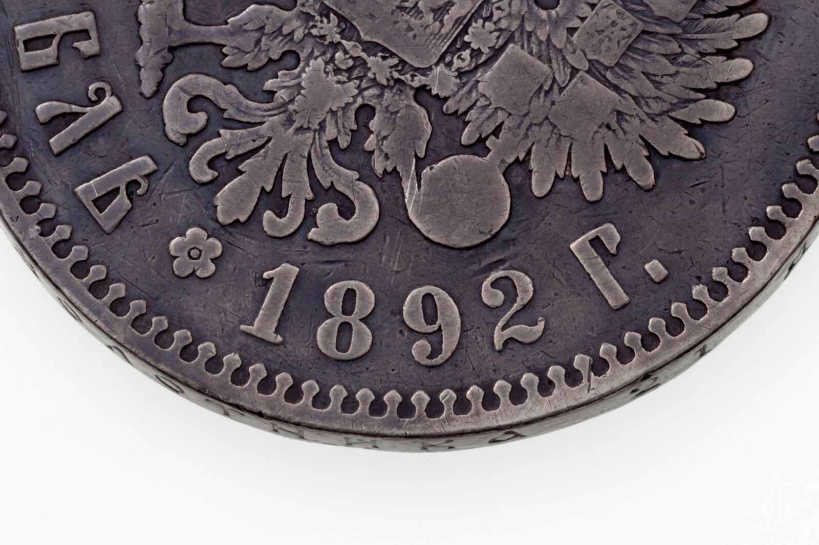 1892 АГ Russia Rouble Silver Coin, Fine Condition Y #46