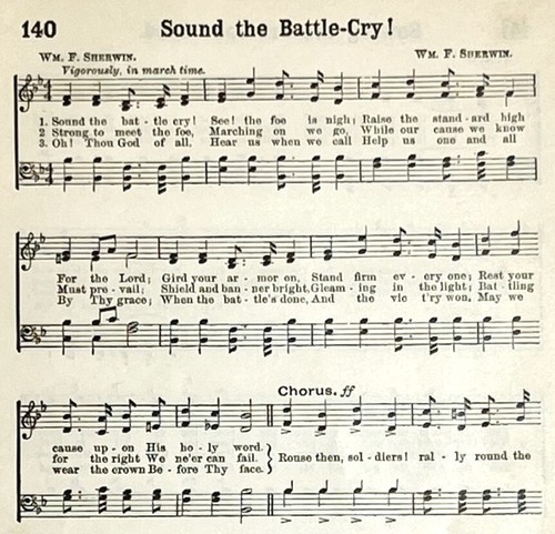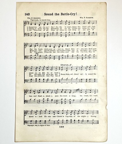 - 1894 Sheet Music Sound the Battle Cry Religious Victorian Hymns 7.75 X 5"