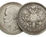 Rublo russo del 1897-1907, lotto di 2 monete d'argento, molto fine, Y 59,3