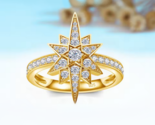 - 18K 925 Sterling Silver 0.1CT Center Moissanite 10-Pointed Star Ring (Size 6-12)