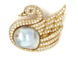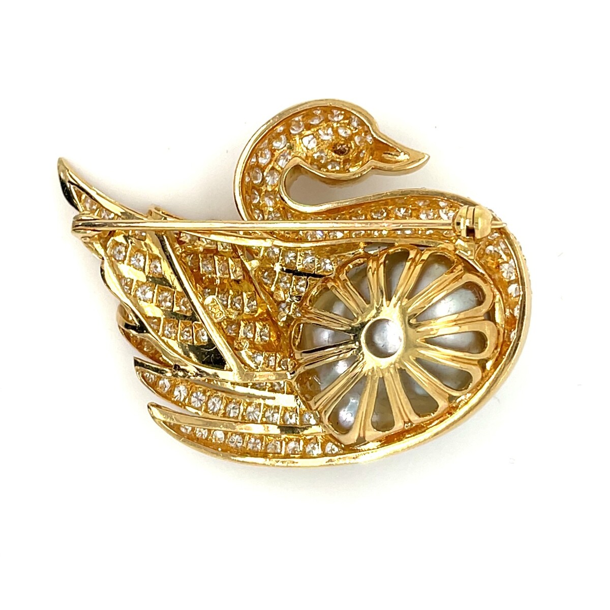 18K Gelbgold 4 Karat Diamant Gezüchtete Perle Schwan Brosche Gelber Diamant Auge