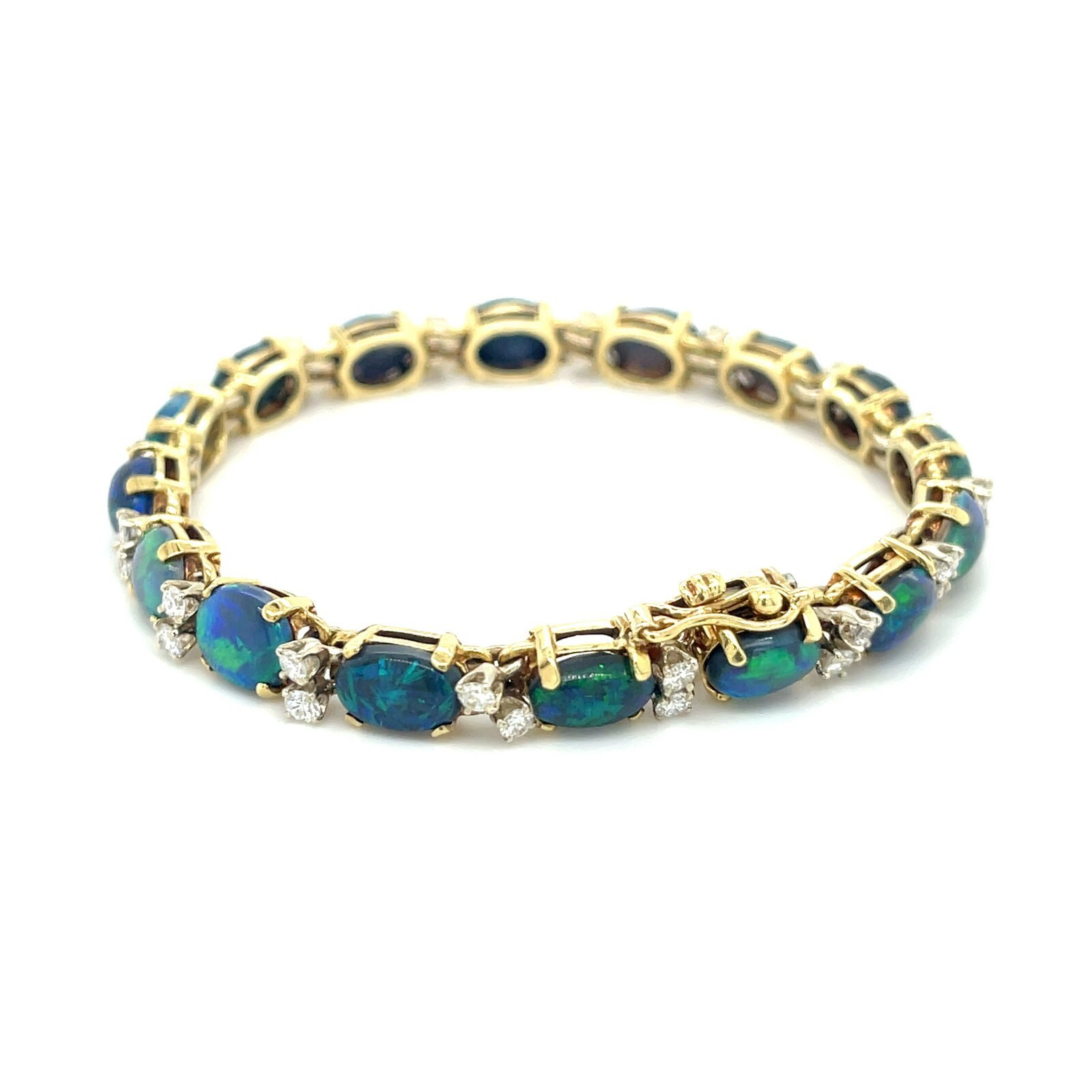 18K Gelbgold Schwarzer Opal Cabochon Und Diamant Armband 6 5/8" Wunderschon