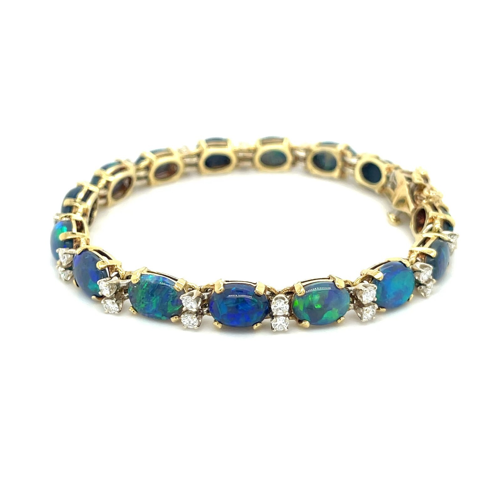 18K Gelbgold Schwarzer Opal Cabochon Und Diamant Armband 6 5/8" Wunderschön
