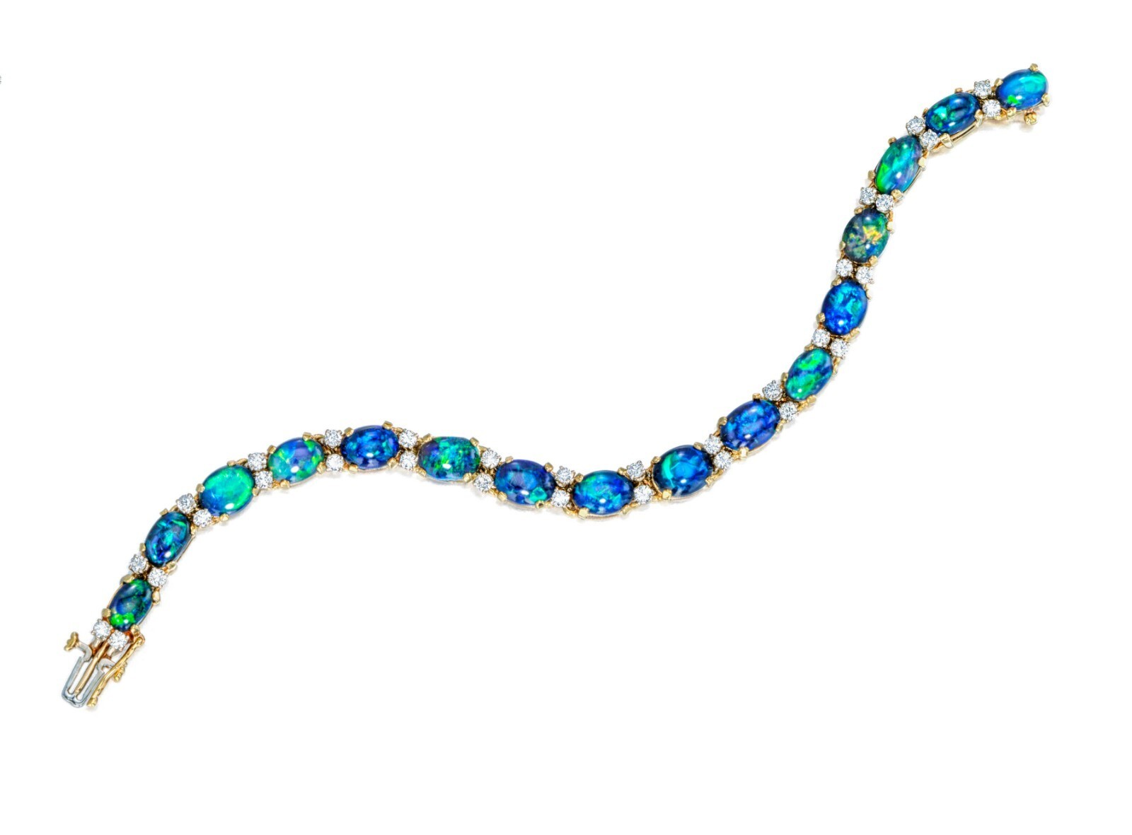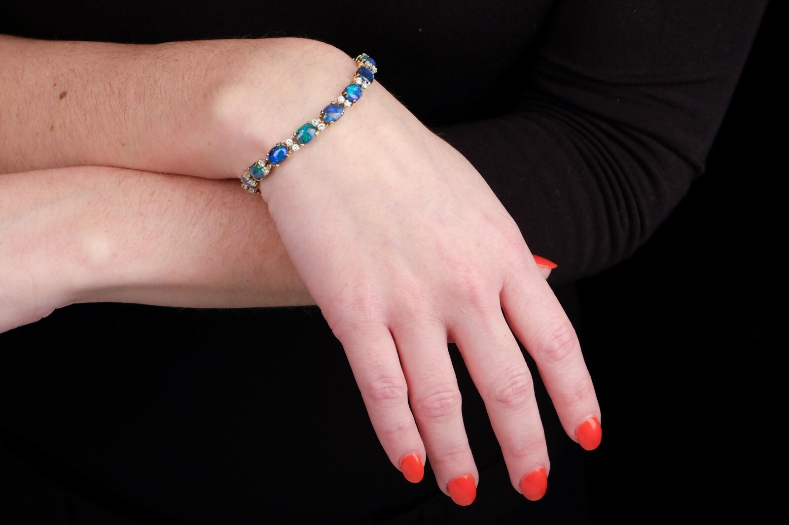 18k gelbgold schwarzes Opal -Cabochon und Diamantarmband 6 5/8 "wunderschon
