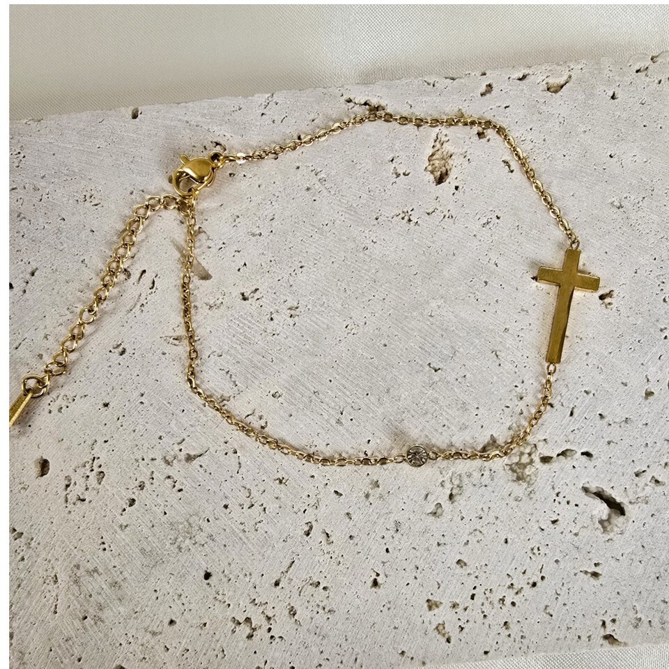 18K Gol Cross Foot Chain Anklets women, Station Chain