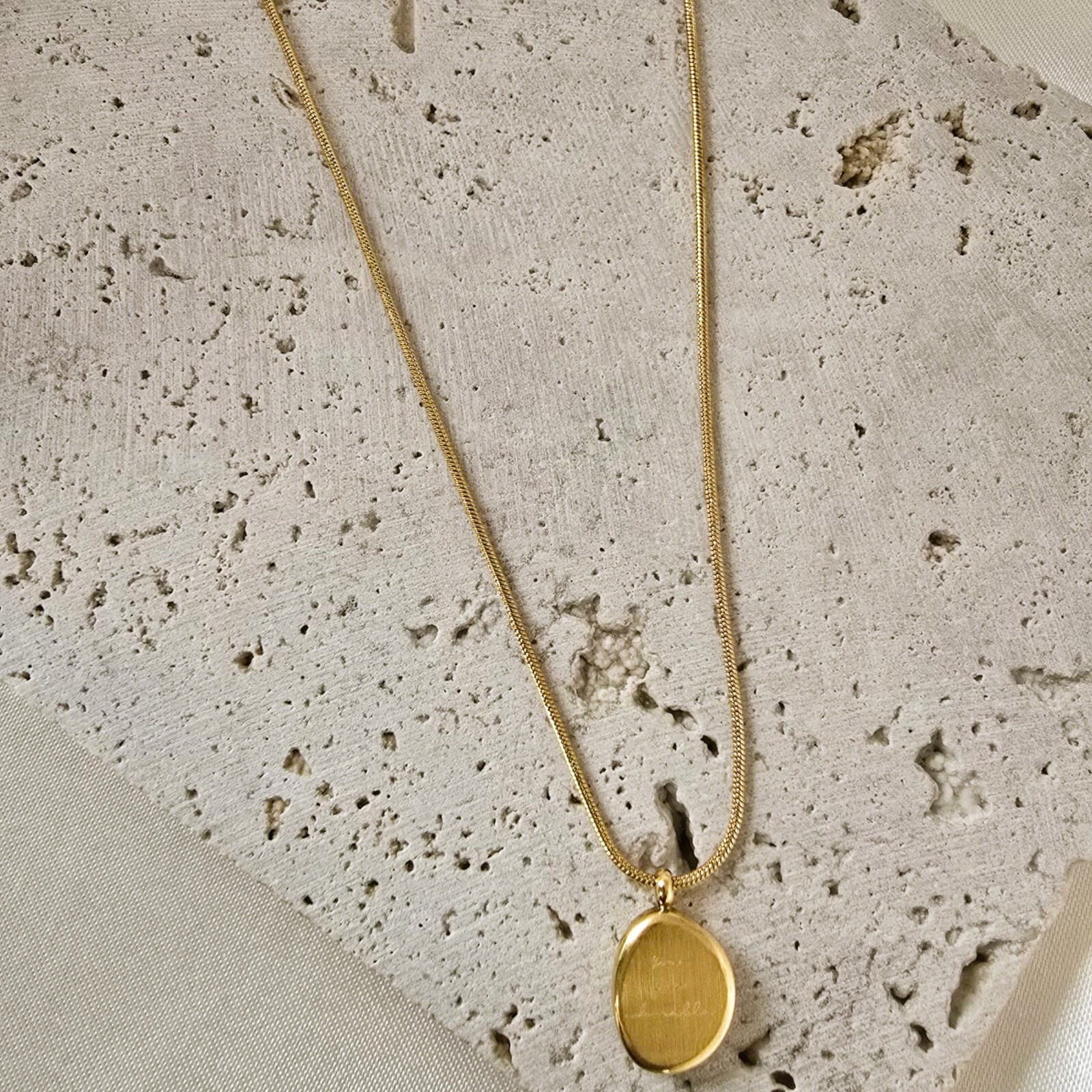 Engraved jewelry always tells a story. Whether you're celebrating a loved one, a milestone, or your own initials, this oval pendant lets you keep meaning close to your heart. Understated, durable, and beautiful made to be treasured.