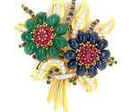 - 18K Gold Smaragd, Saphir, Rubin Und Diamant Blumenbrosche 2-5/8" X 2" 31,2g