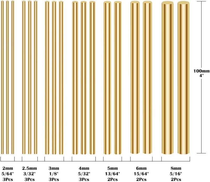 - 18Pcs Brass Solid round Rod Lathe Bar Stock Assorted for DIY Craft Tool, Diamete