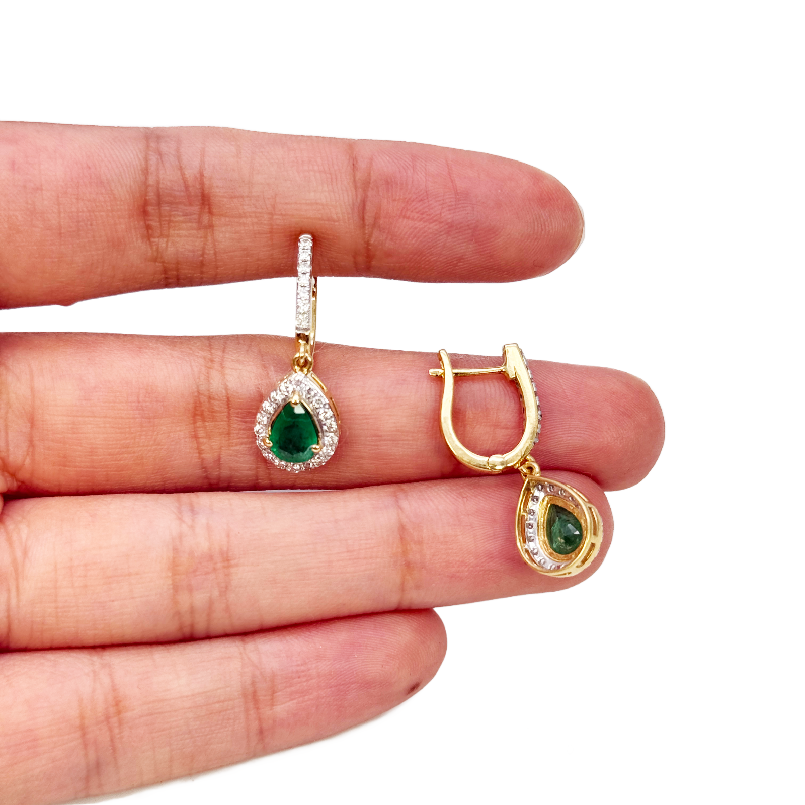 - 18ct Yellow Gold Natural Diamond & Zambian Emerald Huggie Hoop Earrings 1.48ct