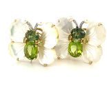 - 18k Gold Perlmutt, Peridot und Diamant Schmetterling Ohrclips
