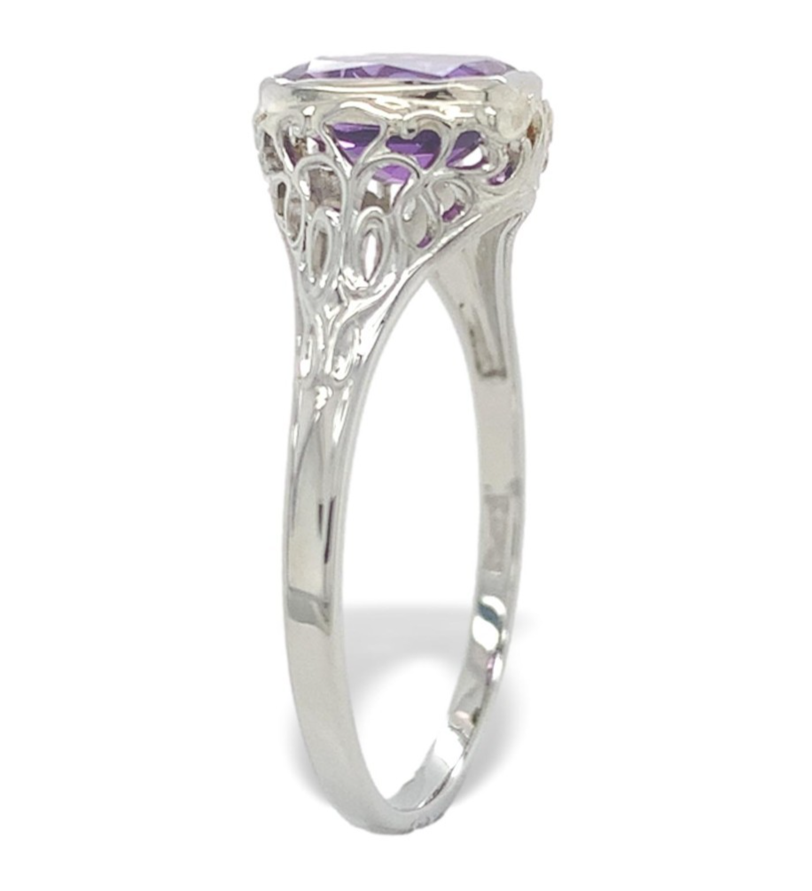 - 18k White Gold 4.38 Carat Genuine Natural Amethyst Filigree Ring 7.75 (#J7443)