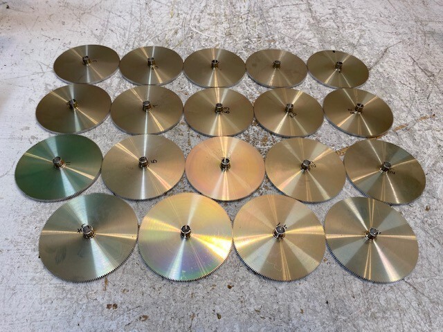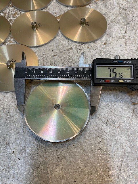 19 Quantity of Aluminum Spur Gears 3" Wide 3mm Thick 6mm Bore 190 Teeth (19 Qty)