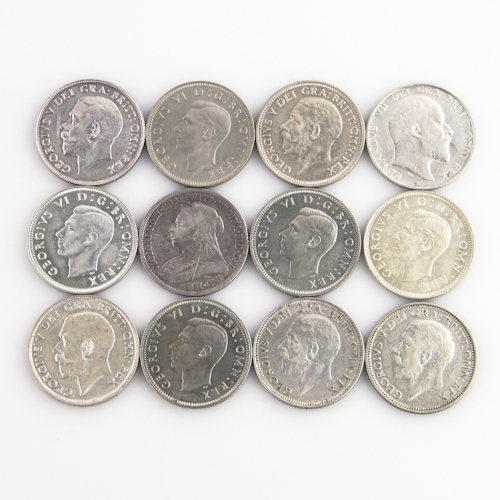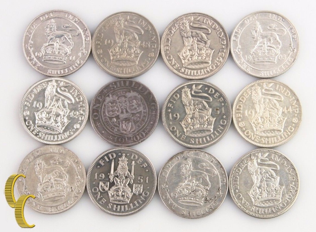 1900-1951 Great Britain 1 Shilling Lot (VF-BU, 12 coins) Victoria Edward George