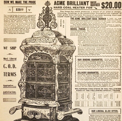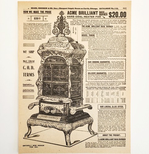 1900 ACME Coal Stove Advertisement Victorian Sears Roebuck 5.25 x 7"