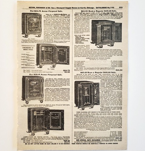 - 1900 Fireproof Home Safes Advertisement Victorian Sears Roebuck 5.25 x 7"