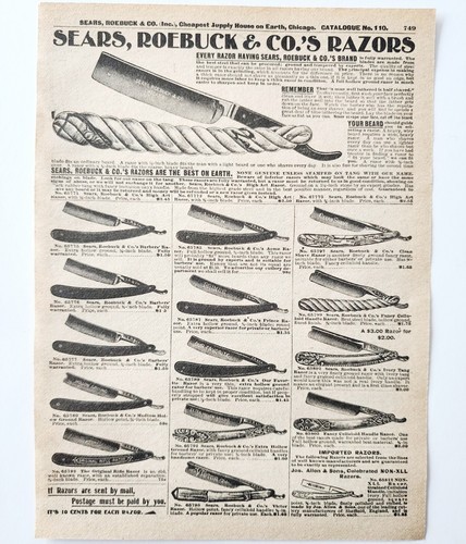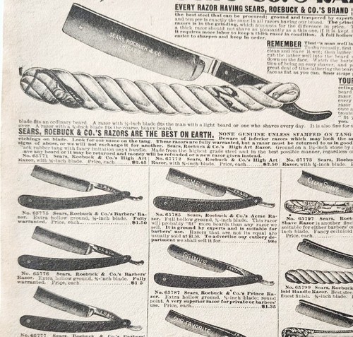 - 1900 Razors Barber Tools Shaving Advertisement Victorian Sears Roebuck 5.25x7"