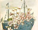 - 1900s Birthday Greeting Card Postcard Nautical Flower Ship Gilded Ephemera E83C
