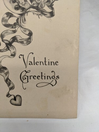 - 1900s Valentine Greetings Lady With Ribbon And Hearts Bergman Quality Post Card