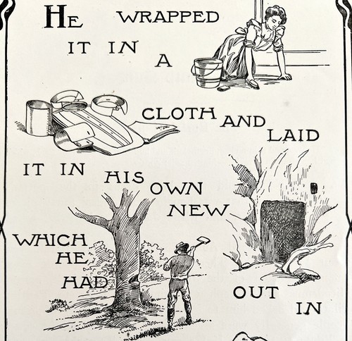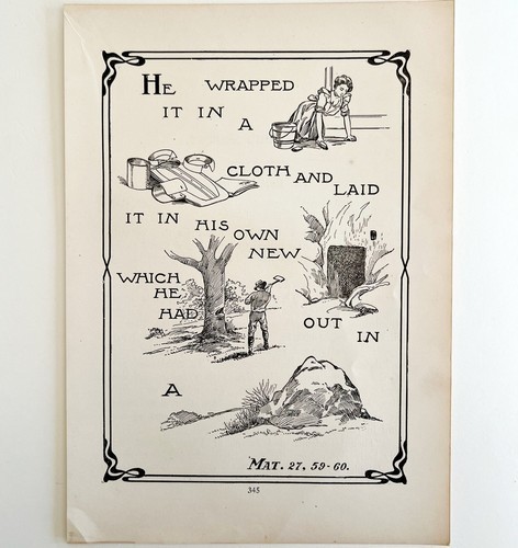 1901 Bible Passage Matthew 27:59-60 Victorian Word Symbol Puzzle Religious DWDD6