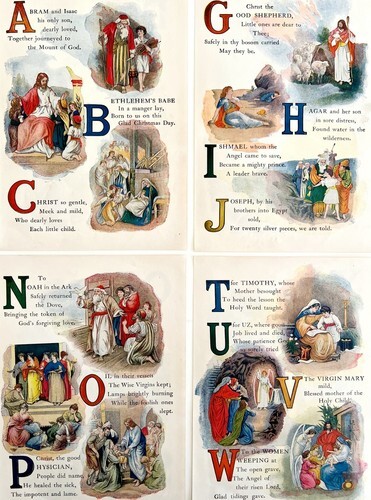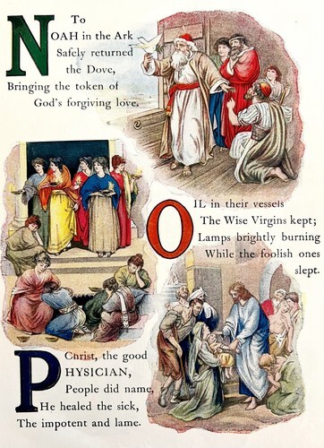 - 1901 Bible Story Alphabet Lot Of 4 Victorian Lithograph Religion Christian DWDD8