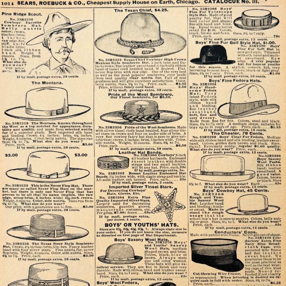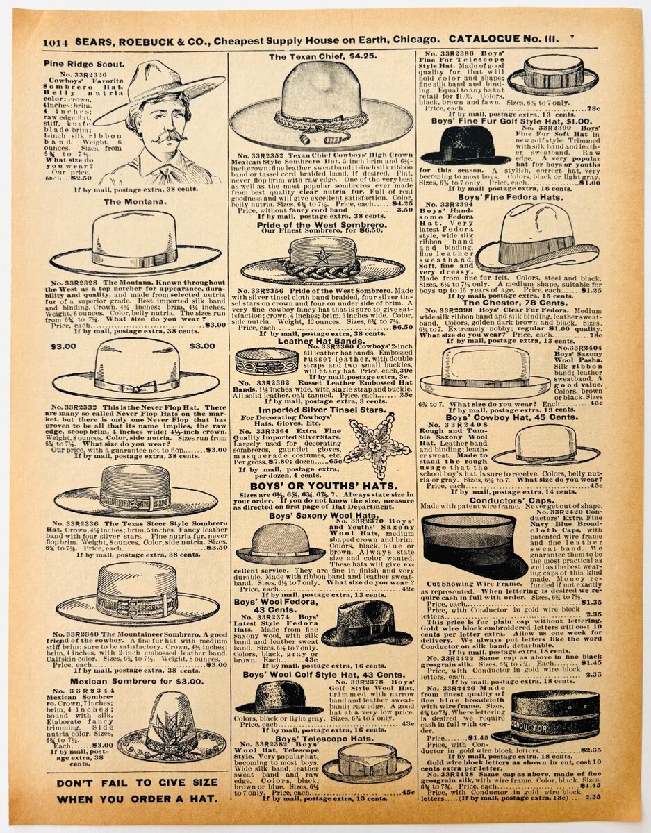 - 1901 Men's Assorted Hats Reproduction Advertisement Sears Fashion Clothes DWU17E