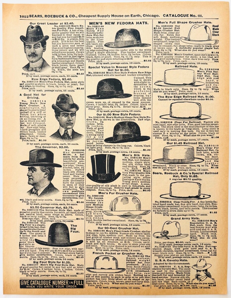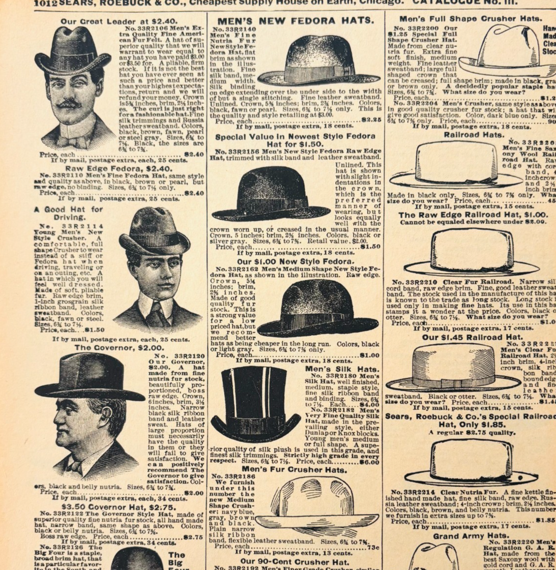 - 1901 Men's Railroad & Top Hats Reproduction Advertisement Sears Fashion DWU17E