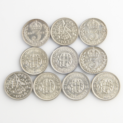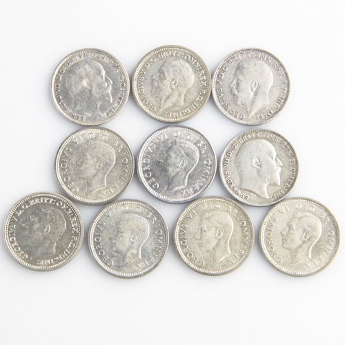 1904-1944 Großbritannien Drei-Pence-Lot (10 Münzen)