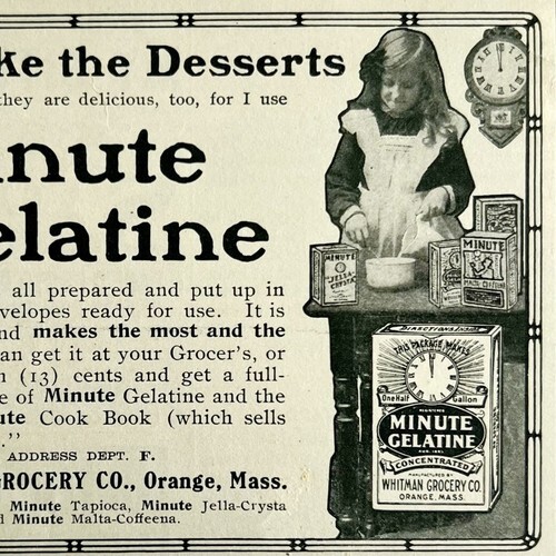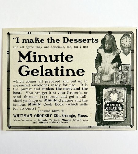 1904 Minute Gelatin Dessert Whitman Advertisement Ephemera 4.75 x 3.75"