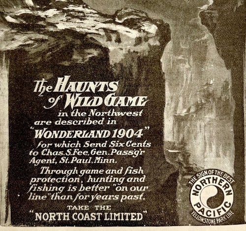 - 1904 Northern Pacific Railway Yellowstone Advertisement Railroad Hunting Fishing