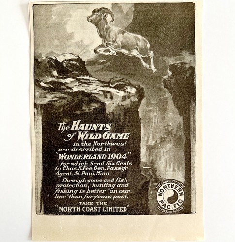 1904 Northern Pacific Railway Yellowstone Advertisement Railroad Hunting Fishing