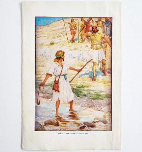 1906 David And Goliath of Gath Print Story Of The Bible 8.25 x 5.75" Antique Art